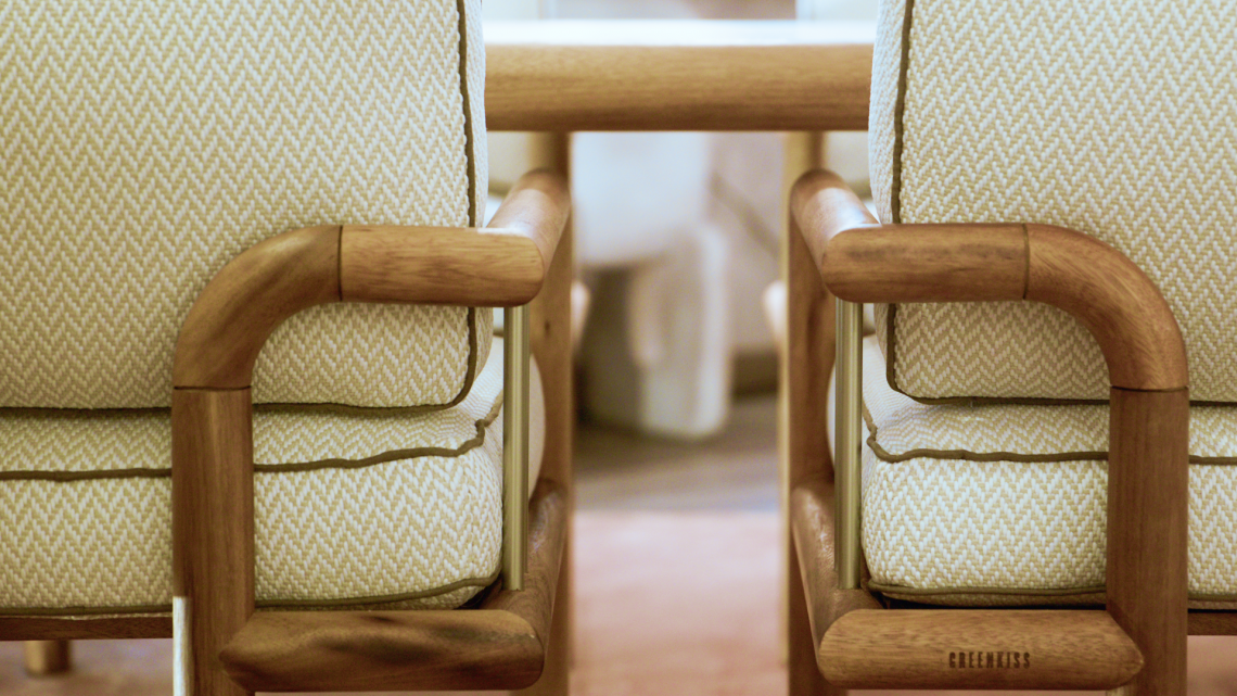 legno massello di Iroko, spazzolato e tinto ad olio naturale