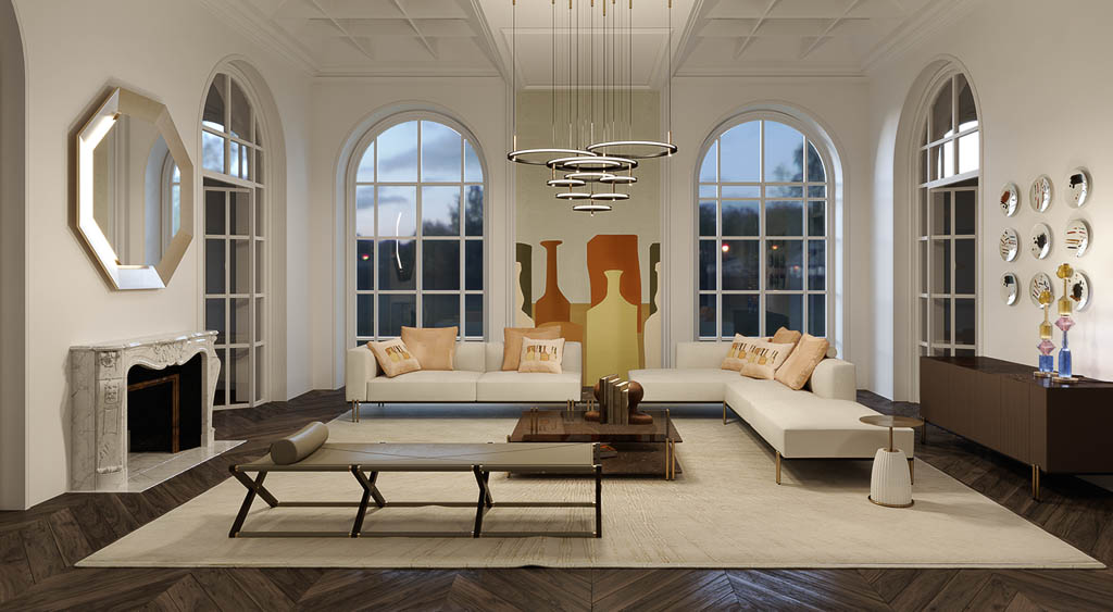 Branda pieghevole con struttura in legno di frassino tinto noce e dettagli in metallo in finitura bronzo ottone opaco, rivestimento in cuoio col. Sabbia e cuciture in tinta.