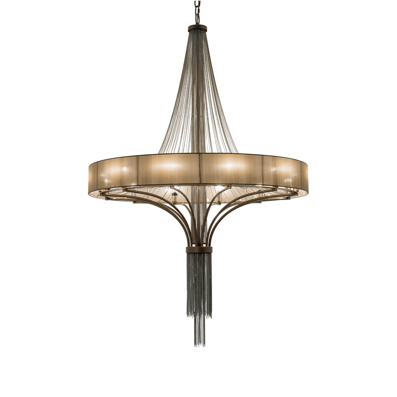 In this collection there is something that reminds of the Far East, its grace, its elegance. Maybe, it could be the big circular lampshades, created in precious fabrics or the bending, ornamental chains, or maybe the pending, charming gems. Strong and delicate at the same time.