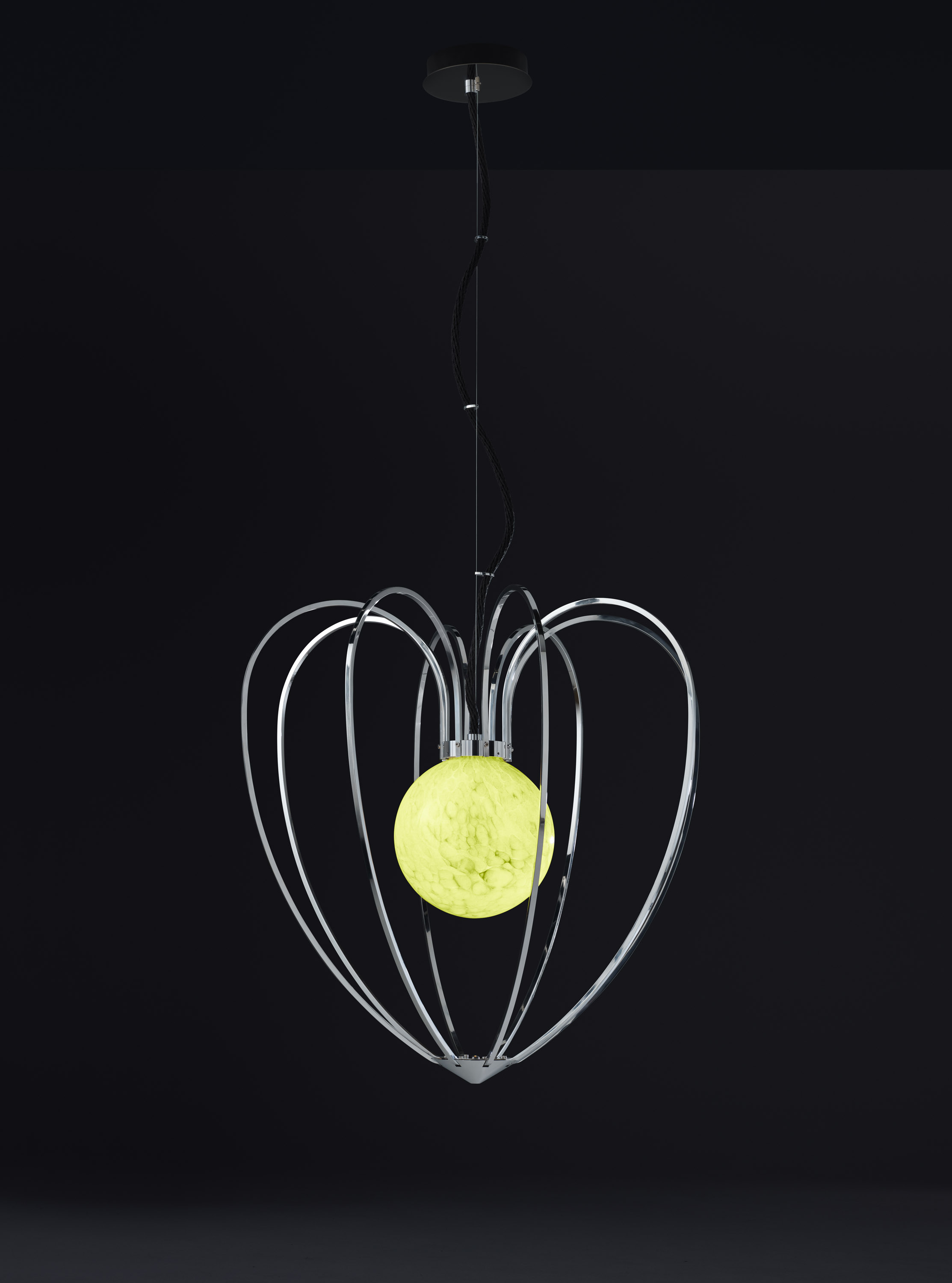 As an extension of the Cosmos Globe series. A very subtle frame is carrying the light sculpture without affecting its unique appearance. Perfect in an open spacr, in front of a wall or in a corner.