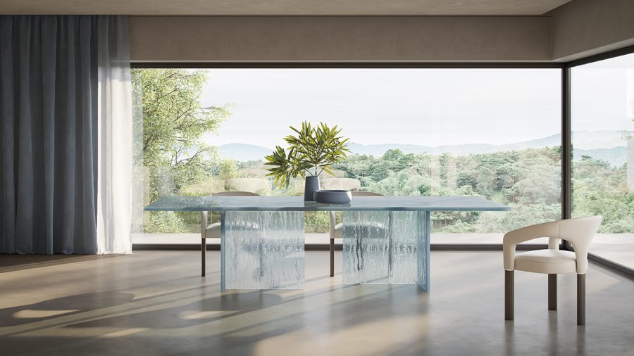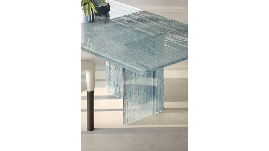 Tavolo in vetro fuso Laguna realizzato a mano dai maestri del vetro.