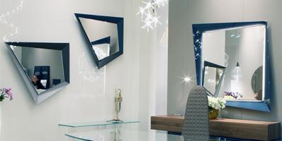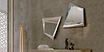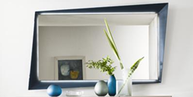 Mirror in extra-clear glass 5 mm thick with frame available in mirror, in lacquered or etched lacquered glass or in satin brass finish. Optional LED lighting between frame and mirror.