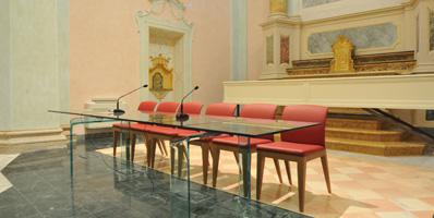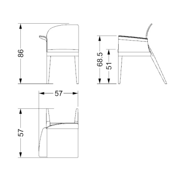 Chair with wooden legs in matt or shiny lacquered finish or in Canaletto walnut. Back in satin titanium, dark titanium, brass or dark brass or in shiny chrome or black-nickel finish. Upholstery available in fabric, velvet or leather. Available with two arms, one single arm right- or left-hand or without arms.