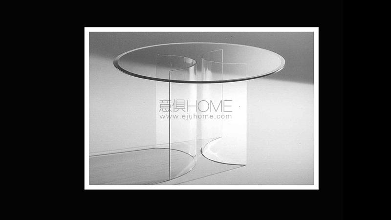 Dining table collection with base in curved glass 12 mm thick. Glass top 12 mm thick with 45° bevel.