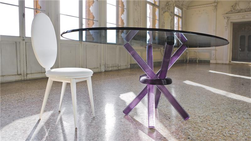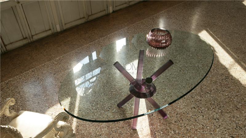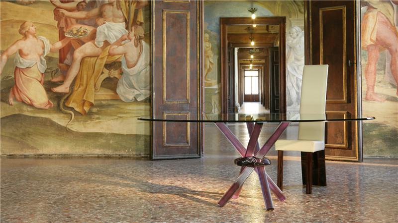 Dining table. Base with legs in smooth Murano glass blue, green, ruby, transparent or white sandblasted.