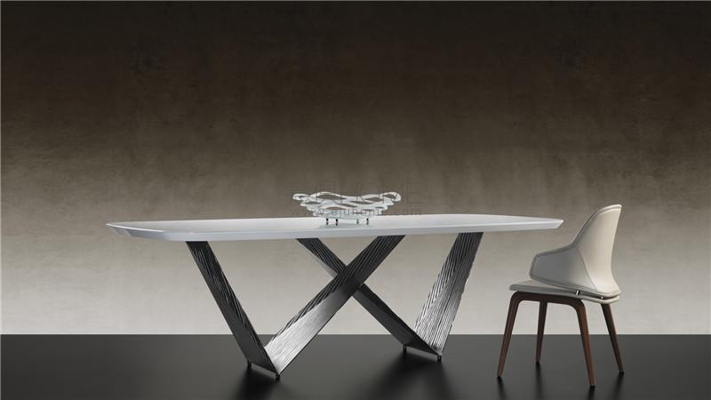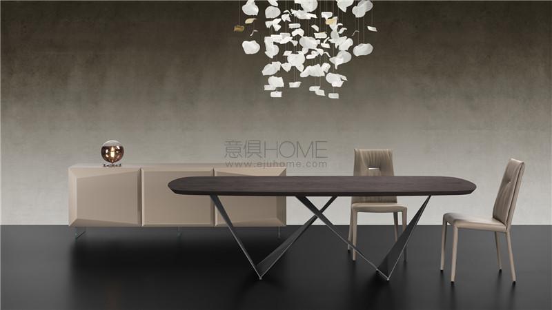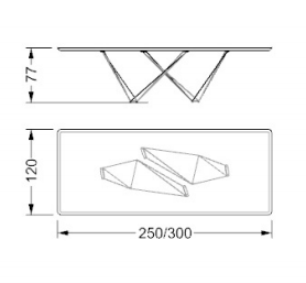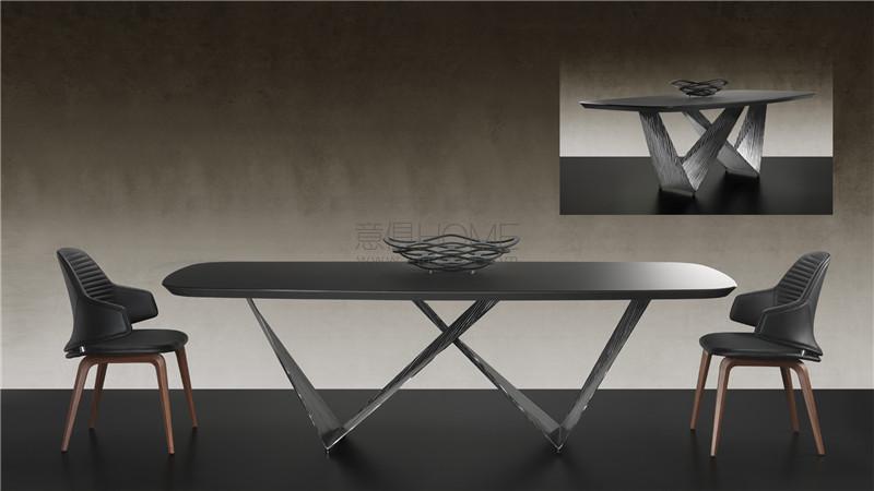 Dining table. Metal bases in Grafite, scratchy steel or in satin brass or titanium finishing. Top in tempered 15mm thick transparent glass.