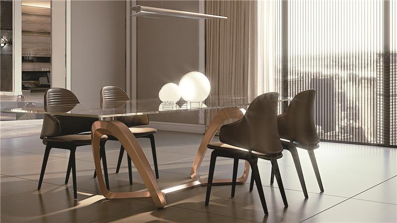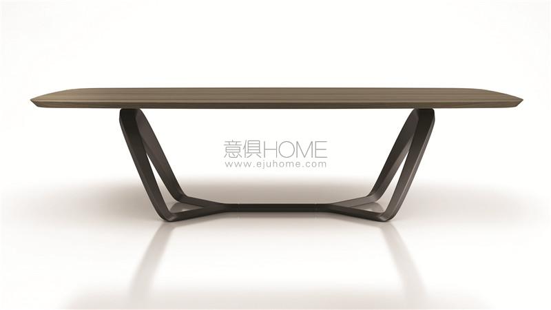 Dining table with base in composite material available in shiny Henné colour or in satin brass or titanium finishing.