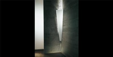 Corner wall lamp in bevelled mirror 5mm thick. LED lighting system.