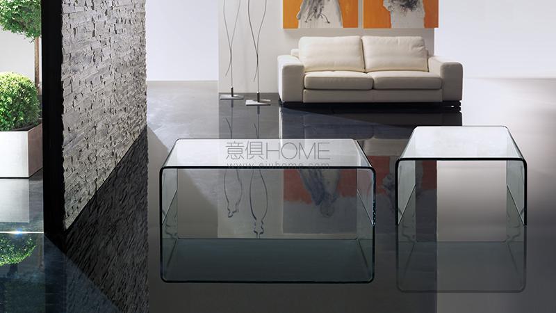 coffee tables in curved glass 10 mm th.