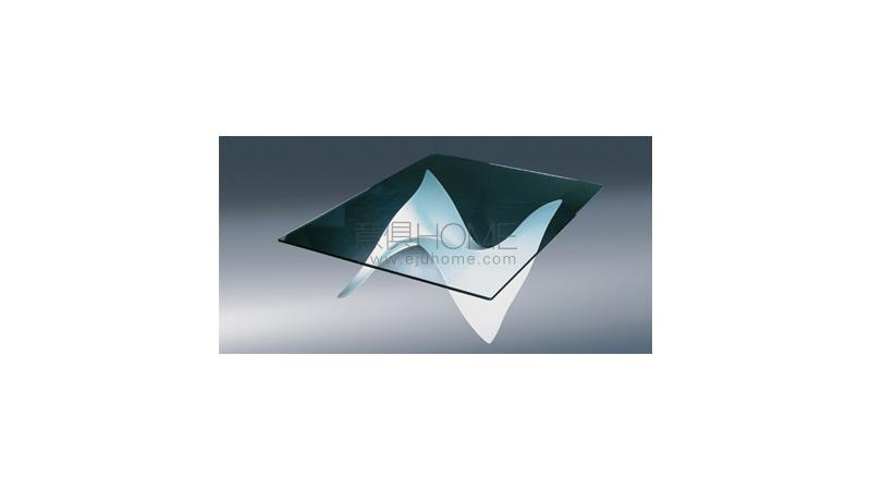 Coffee table with base in curved extraclear, bronze or smoke-grey glass with sandblasted finish.Available also in sandblasted and lacquered glass.Glass top 12 mm thick.