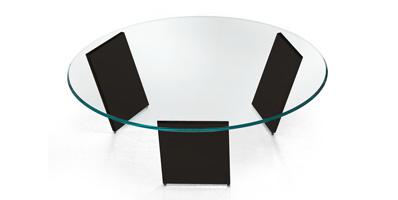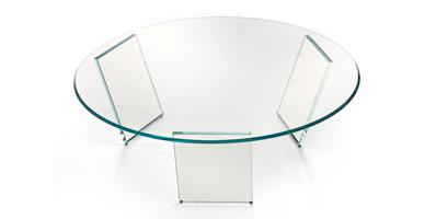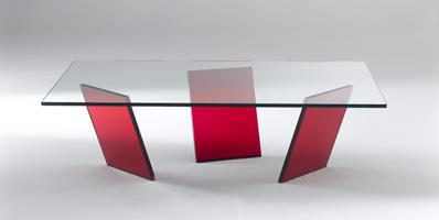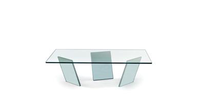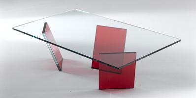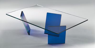 Coffee table with legs in 15mm thick extraclear etched, bush-hammered, lacquered or etched lacquered glass.Glass top 12 mm thick.