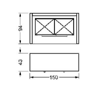 Sideboard in shiny lacquered wood with application of bevelled lacquered glass on top and fronts. Back in white matt finish. Storage unit with two or three doors with push-pull opening or with optional crystal or Murano glass handles.