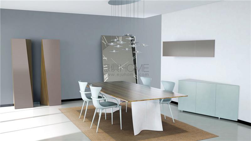Cabinet in wood in matt lacquered finish or in Canaletto walnut. Door in lacquered or etched lacquered glass, Black Pearl or Supersilver glass. Optional internal lighting system.
