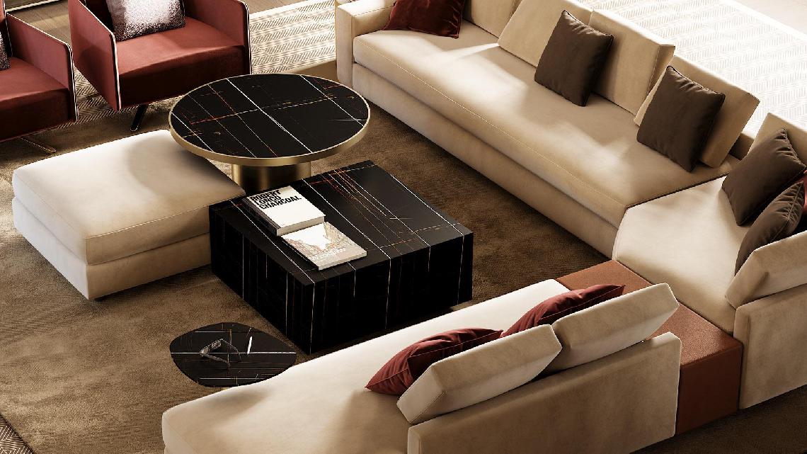 Coffee and/or sofa-insert tables with internal wooden structure and external cover in leather or in glass and Marble-glass