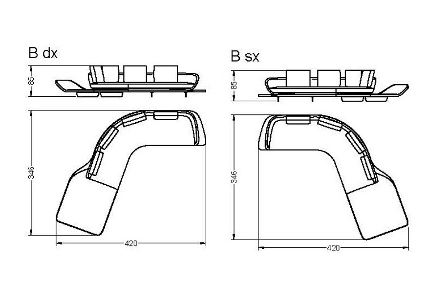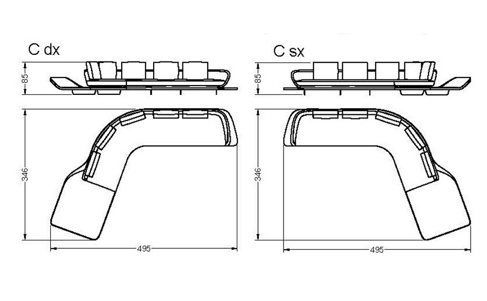 MODEL B: curved and angled, 4 cushions and 1 arm left or right