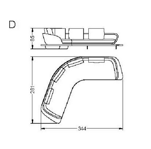 MODEL C: curved and slightly angled, with 1 arm, left or right.