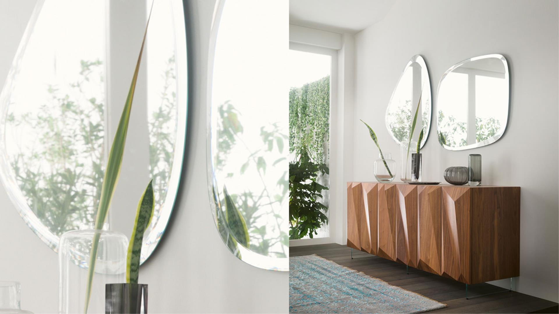 Collection of mirrors in 5mm or 8mm thick extra-clear glass with irregular bevel.;