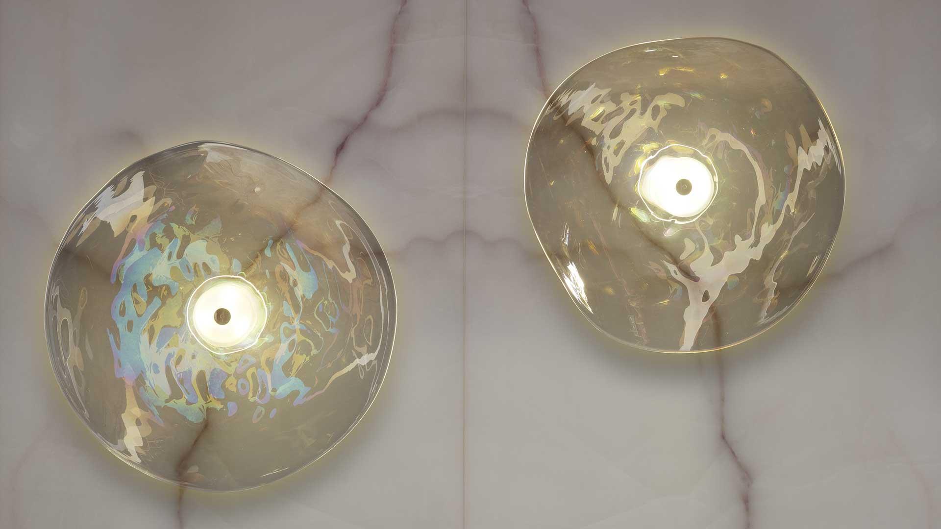 Wall lamp with flower element in Murano glass white or iridium-amber and metal support. LED lighting