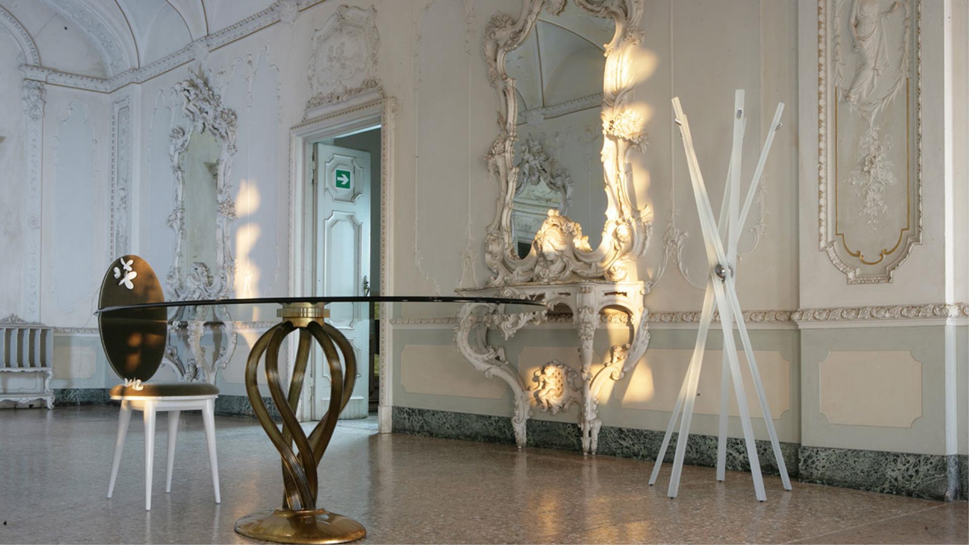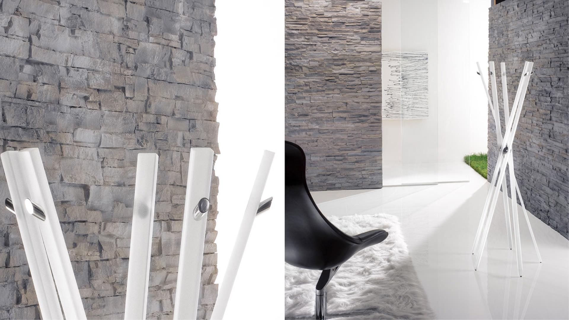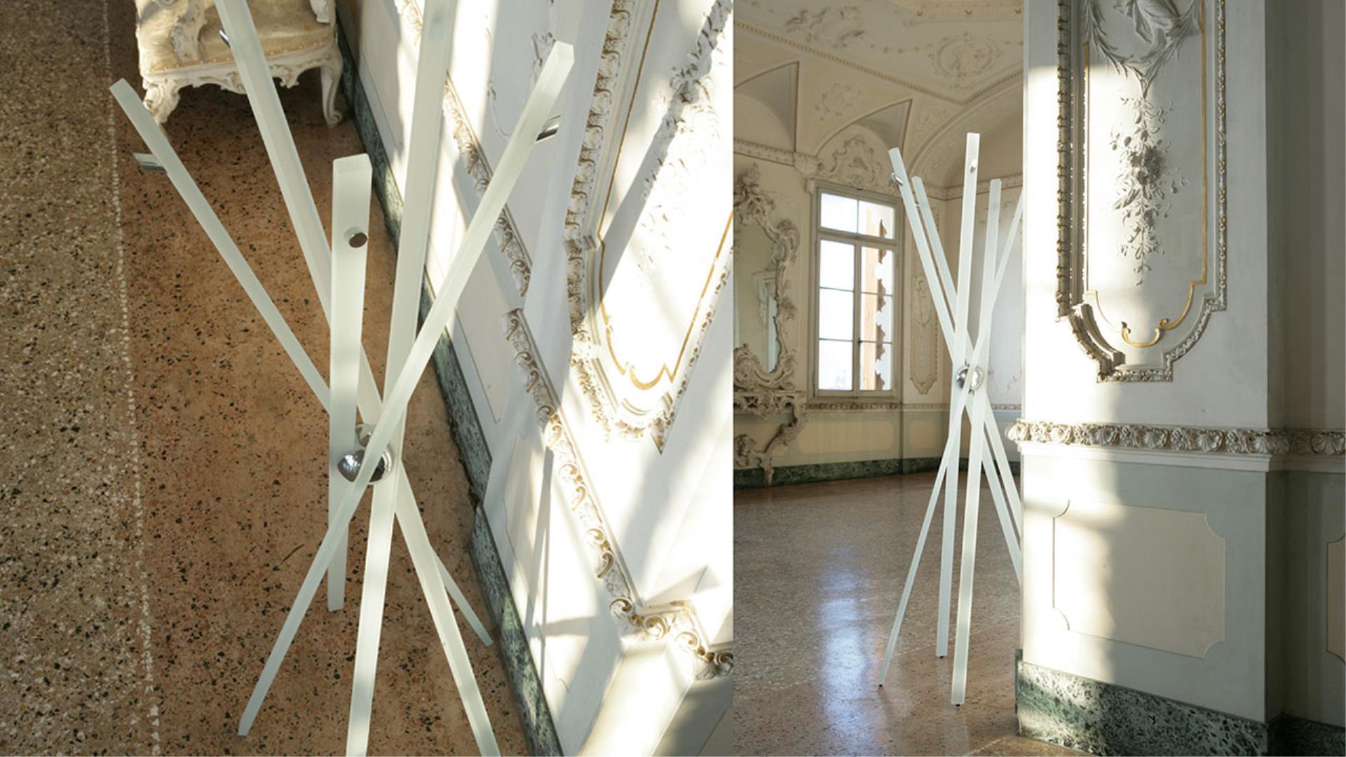 Clothes-stand in tempered glass 19 mm thick transparent or white sandblasted with chromed joint and hooks