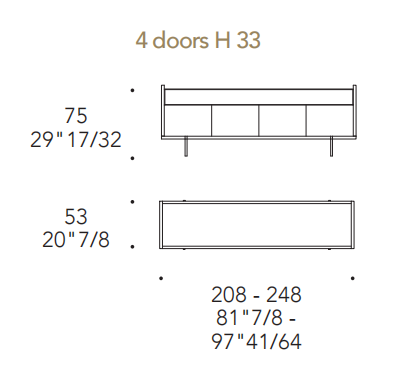 Buffet low con struttura in Legno Noce canaletto, Noce Canaletto Hennè, nelle finiture metalliche satinate o nelle finiture laccate Venezia.