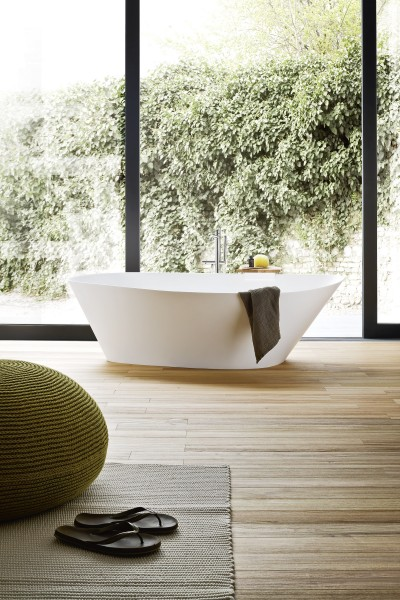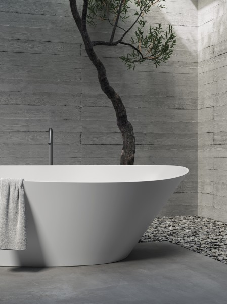 Una geometria nitida definisce la vasca Unico squadrata in Corian, disponibile in tutti i colori a listino. Può essere accessoriata con tutti i sistemi benessere.