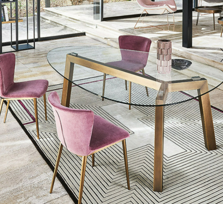 La sedia Anna è interamente rivestita, ha una struttura in acciaio e lo schienale e la seduta sono imbottiti e non sfoderabili. Sul retro presenta una cerniera decorativa. Rivestimenti in tessuto, pelle, similpelle, econabuk, smacchia e velluto