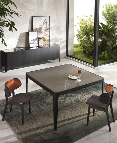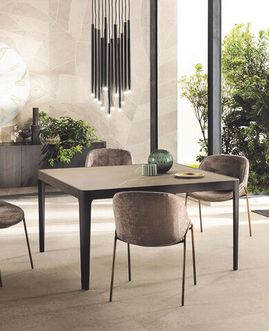 Il tavolo Atlante è interamente in legno, disponibile nelle finiture noce canaletto e rovere coke termo-trattato. Le gambe a cavalletto della larghezza di 17 cm gli conferiscono un aspetto maestoso. La bisellatura del piano mette in risalto le calde venature del legno. Il tavolo è dotato di un sistema di allunghe con guide in alluminio anodizzato. Le allunghe, da 40 cm, sono interne in biglia con il