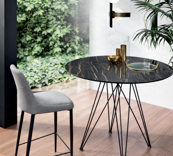 Il tavolo Atlante è interamente in legno, disponibile nelle finiture noce canaletto e rovere coke termo-trattato. Le gambe a cavalletto della larghezza di 17 cm gli conferiscono un aspetto maestoso. La bisellatura del piano mette in risalto le calde venature del legno. Il tavolo è dotato di un sistema di allunghe con guide in alluminio anodizzato. Le allunghe, da 40 cm, sono interne in biglia con il