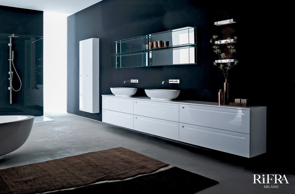 Il modulo che disegna K.LINE è il 40 cm, sviluppato sia in larghezza che in altezza. K.LINE è inoltre caratterizzato da una gola laccata, vero e proprio segno distintivo della collezione, che percorre tutto il profilo superiore del mobile e può essere laccata opaco a piacimento.