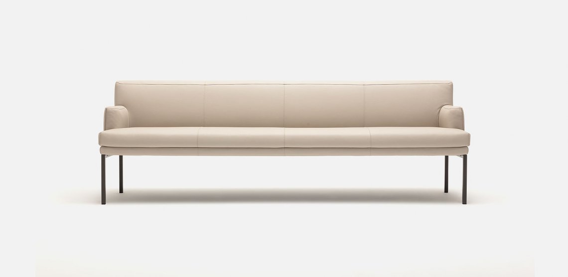 A safe bet for any occasion: whether side by side at the dining table or stretched out with a cushion behind your back, Rolf Benz 644 always provides the space you need and encourages you to sit back and relax. This is due to its simple and reserved design that blends in seamlessly with any interior. The base is available coated in Umbra grey, Traffic black or Silver.