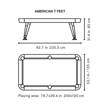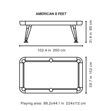 The Diagonal pool table comes in two sizes, 8 ft American and 7 ft American, in order to meet different space requirements.