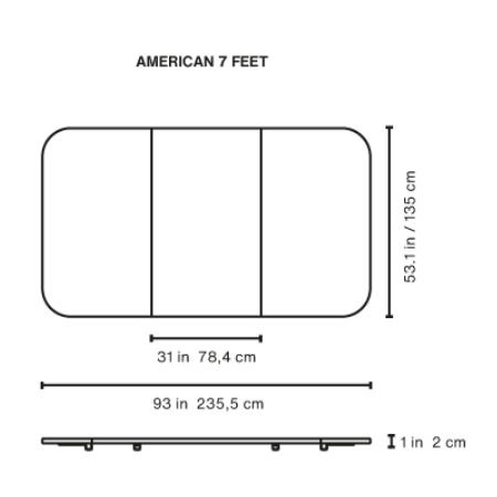 The dining top completely covers the cloth, pockets and structure in a matter of seconds. Three independent pieces that slot together, turning the Diagonal into a table. Because the top is composed of three pieces, it can be easily handled and stored while the Diagonal is in pool table mode.
