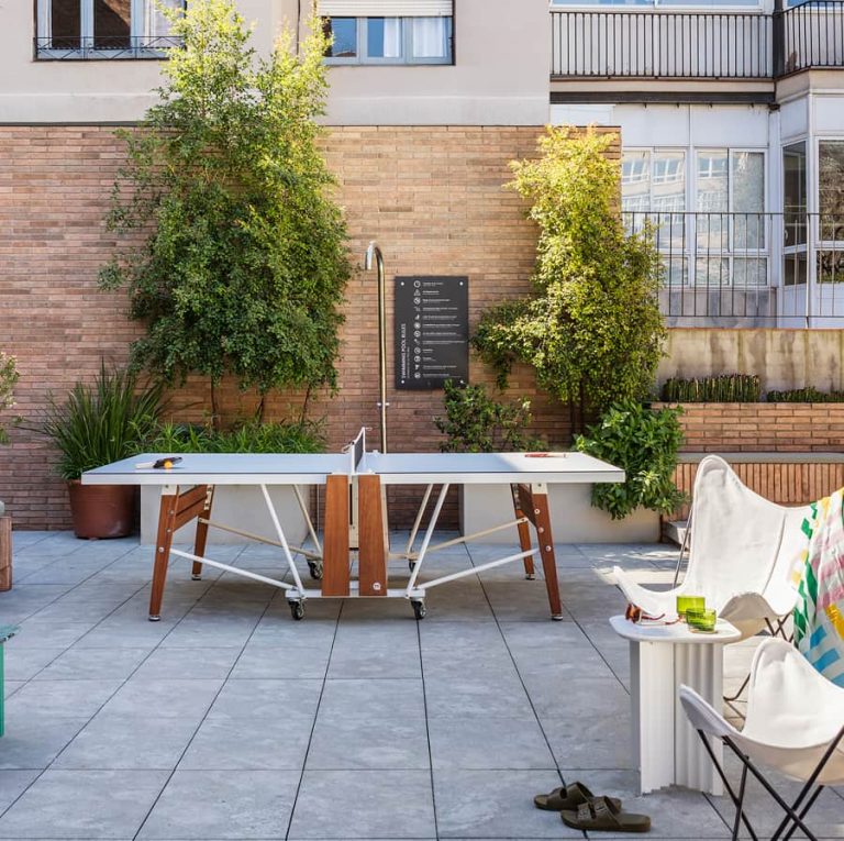 What’s more, thanks to the RS Folding ping pong table, you no longer need to miss out on playing ping-pong due to a lack of space. Once folded, by means of a simple mechanism located underneath the tabletop, it takes up little space. And you can easily move it to the most convenient spot thanks to its tough all-terrain wheels.