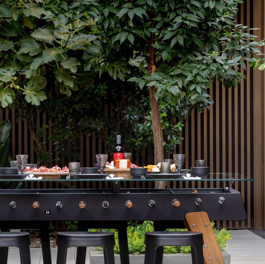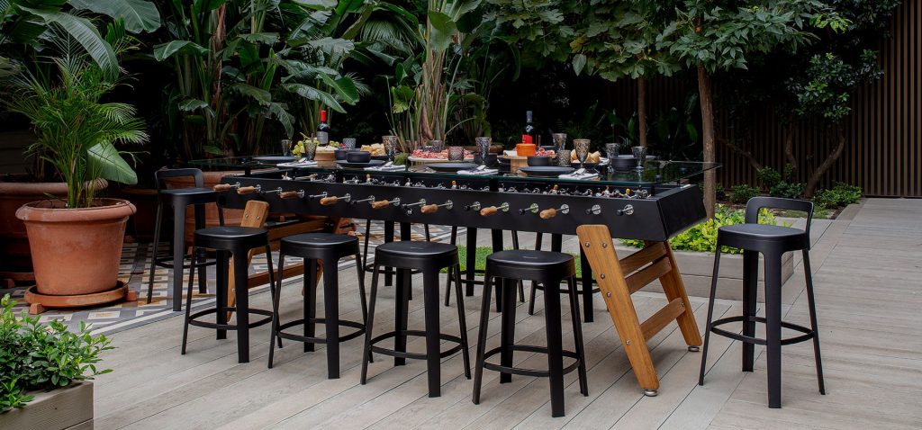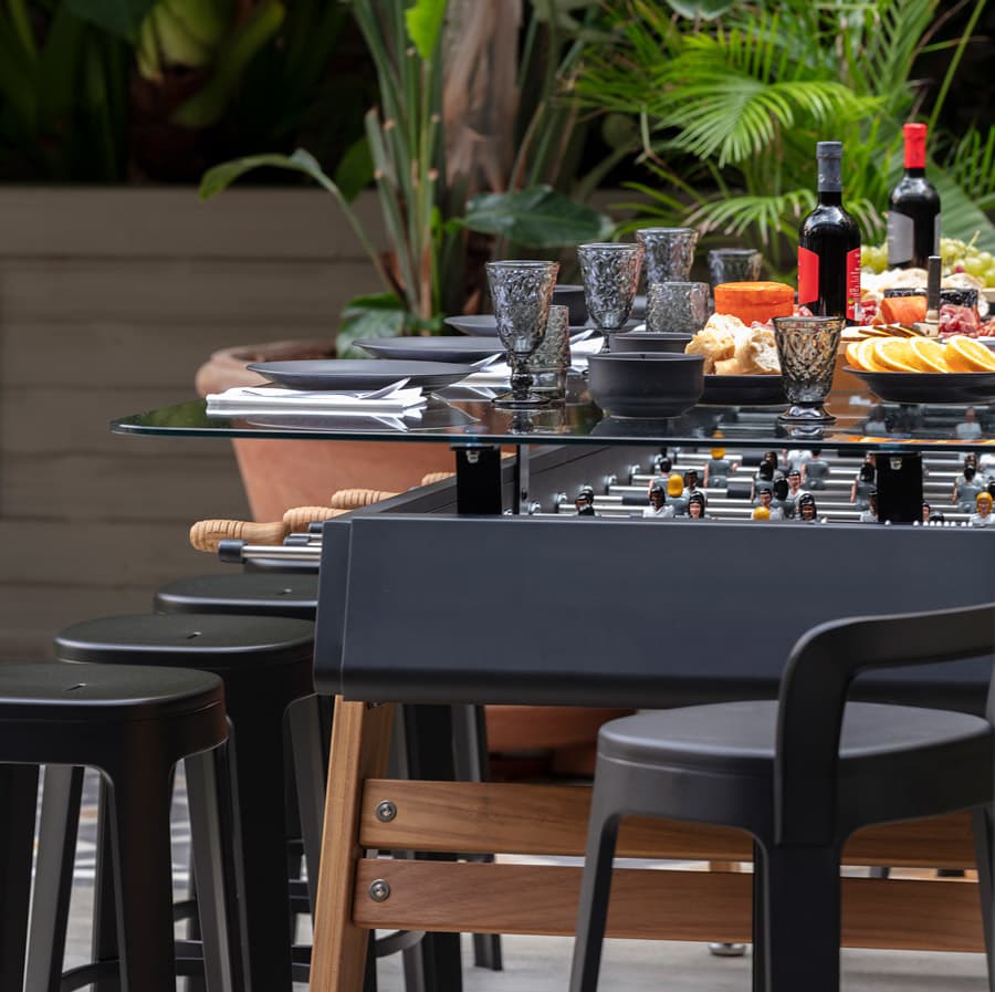 With a height of 100 cm (39.4 in), it’s a tall table that will be the centre of attraction wherever it stands, whether in a bar, in the common area of a workplace, in the games room of a private dwelling or on a porch. Accompanied by a set of counter-height stools (76 cm / 30 in), it creates the perfect setting for meetings and maximum fun around the table.