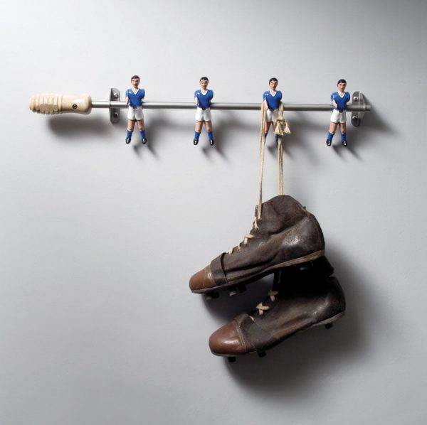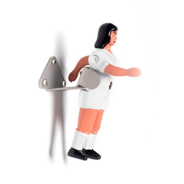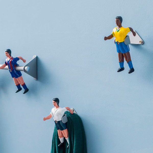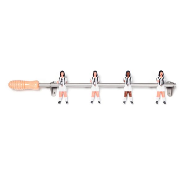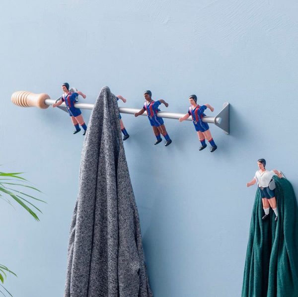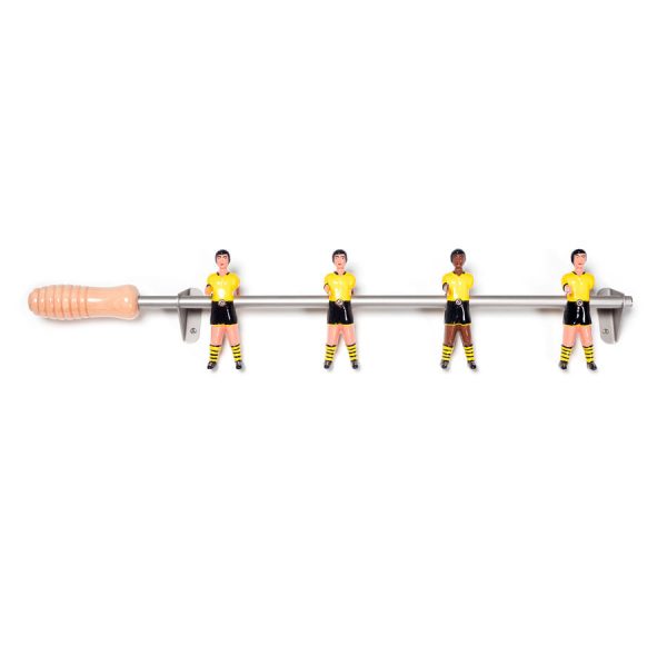 Wall Champions comes in two different models: the Wall Champions 4 – a rod with four players and a wooden handle that’s always visible – and the Wall Champions 1 – a single player with a wall fixture that’s hidden when you hang your jacket on it.