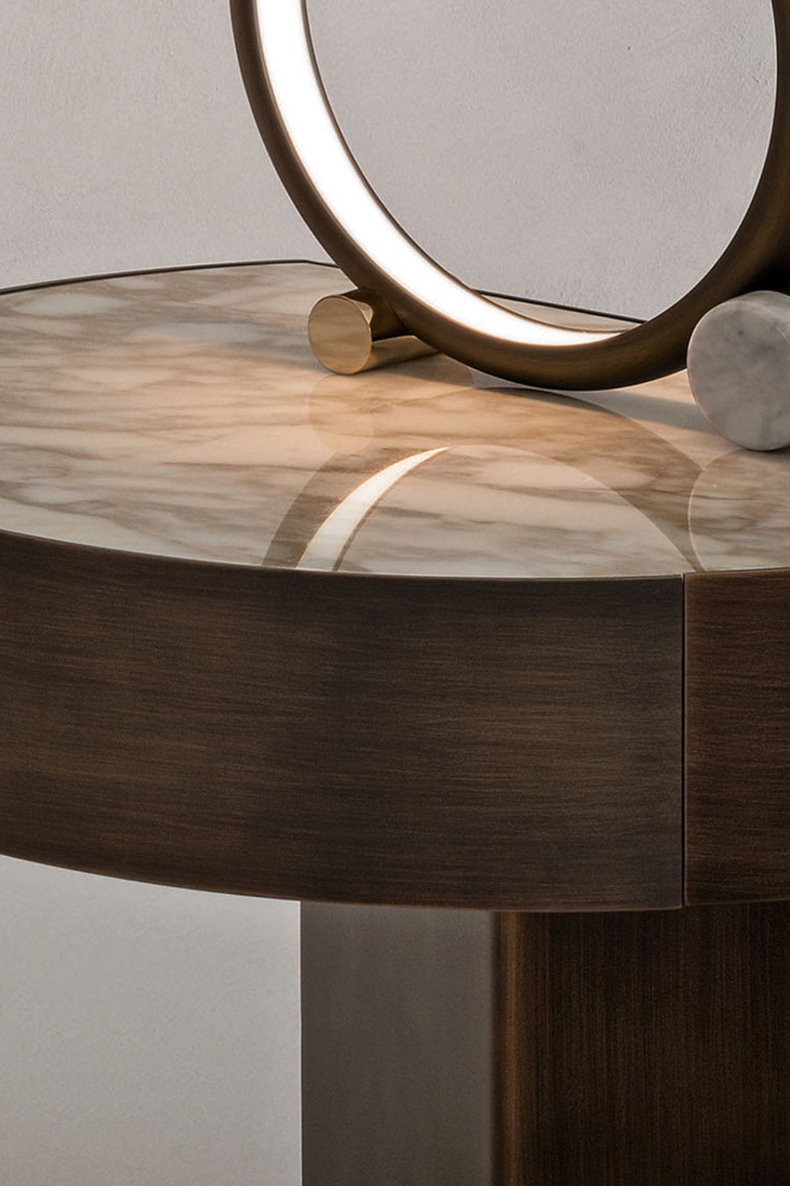 Inca 床頭柜結(jié)合了珍貴的材料和飾面,打造出一種樸素而優(yōu)雅的設(shè)計(jì),能夠提供新的美學(xué)功能解決方案。頂部和底部的兩個(gè)元素都具有圓形幾何形狀,賦予產(chǎn)品堅(jiān)固而輕盈的感覺。