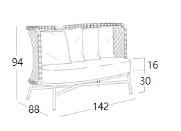 Divano in acciaio 304 verniciato a polveri, intrecciato con Flat Trendyrope. Un divano accogliente, dove la particolare geometria dello schienale si coniuga perfettamente al desiderio di comfort, creando un angolo per vivere momenti di relax. Ottimo per arredare terrazzi e patio, dona forte personalità anche alle zone living interne. Ideale per arredamenti residenziali e contract.