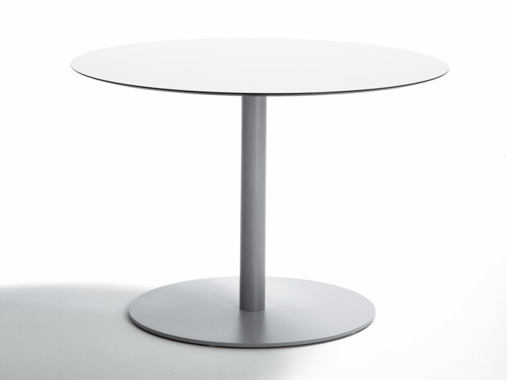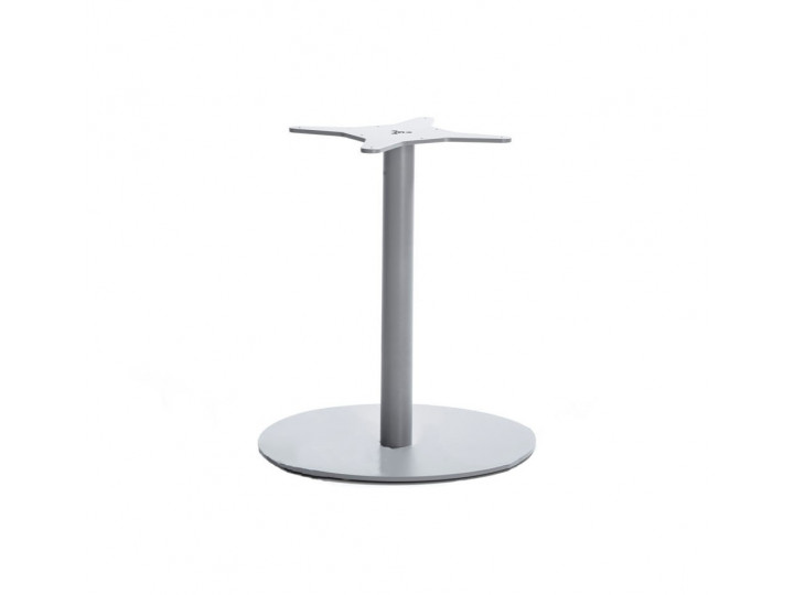 Base tavolo con colonna e crociera sotto-piano in alluminio. Verniciatura a polveri (RAL 9006). La colonna poggia su una base tonda, ideale per l’arredamento esterno di bar e ristoranti sia in situazioni contract che residenziali.