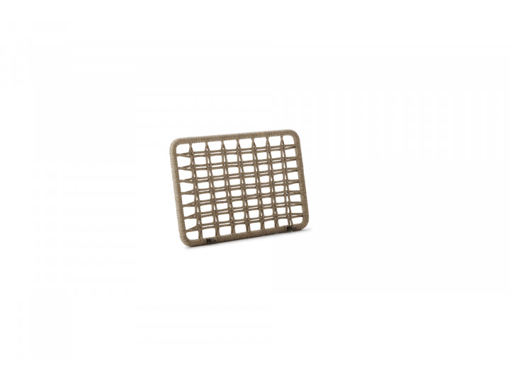 Schienale in acciaio inox Aisi 304 verniciato a polveri, intrecciato in Oval Trendyrope. Elemento componibile della linea Armàn, il cui intreccio in corda conferisce un tocco di artigianale raffinatezza ai divani, alle poltrone, alle chaise longue e daybed che compongono la collezione. Un dettaglio che costituisce non solo un elemento visivamente affascinante, ma offre anche un comfort ergonomico e un sostegno accogliente.