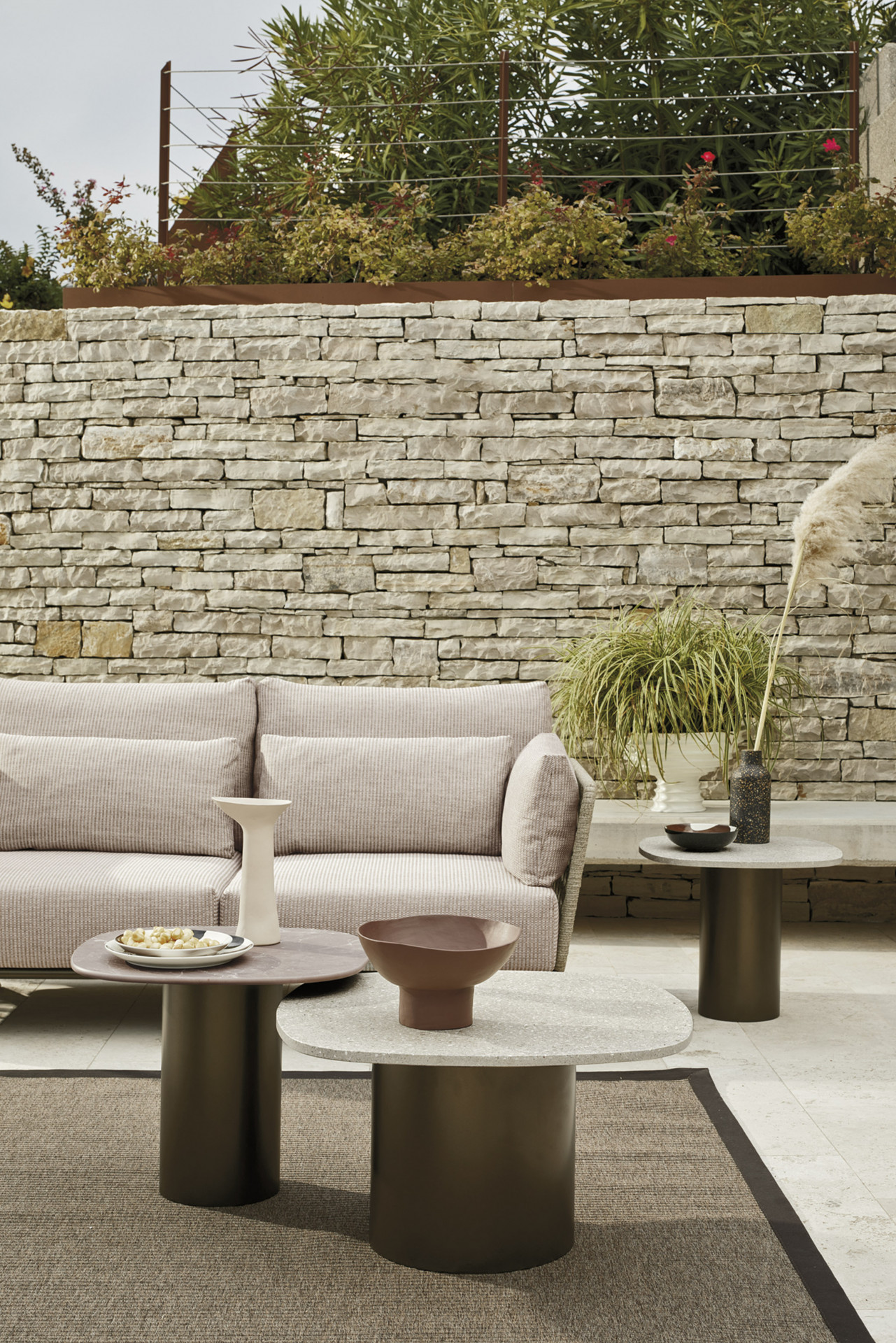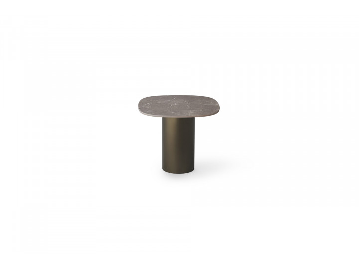 Tavolino basso in  lamiera di acciaio inox Aisi 304 verniciata a polveri  con base rotonda (cilindrica) e top in HPL. Ispirato all'architettura contemporanea, il suo design minimalista esprime uno stile moderno ed armonico ed è adatto sia per esterno che per interno, residenziale e contract.