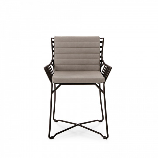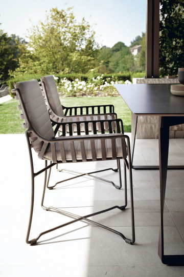Sedia in alluminio verniciato a polveri. Sedia dal design semplice ma ricercato impreziosita dalla speciale lavorazione dell’alluminio. La seduta ampia e comoda le conferisce un aspetto versatile che consente di giocare nelle composizioni e negli accostamenti. è una sedia da esterno per l’arredamento residenziale e contract.