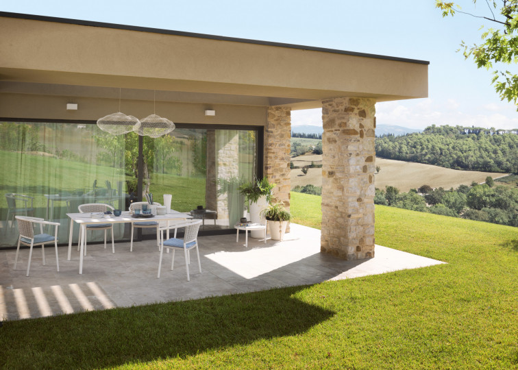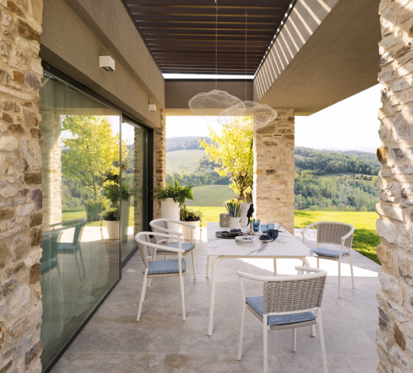 Tavolo con piano in vetro temperato moka e base in ghisa moka. Tavolo da 6 persone adatto per arredare terrazzi, giardini e zone living interne ed esterne. Classico e dalle linee semplici, la sua forza viene dalla robustezza del piano in vetro temperato. Ideale per l’arredamento contract e residenziale.