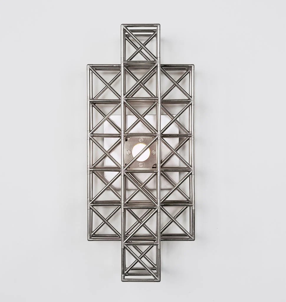 Raw and unpretentious, Gridlock is a series of lamps in the style of the Brutalist movement. Gridlock feels industrial in its straightforward, platonic forms and the repetitive efficiency of the grid; however, it is assembled entirely by hand from thousands of tiny brass parts. Philippe Malouin's tribute to the industry-inspired, labour-saving dreams of modernism is paid for in toil.