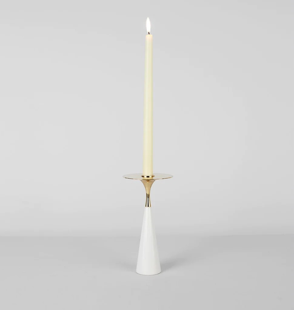 The Moor Candleholder is Jason Miller's latest exploration into the combination of ceramic and metal. The conical stoneware base blends into a trumpet-shaped aluminum top, culminating in an effortless union of contrasting materials.