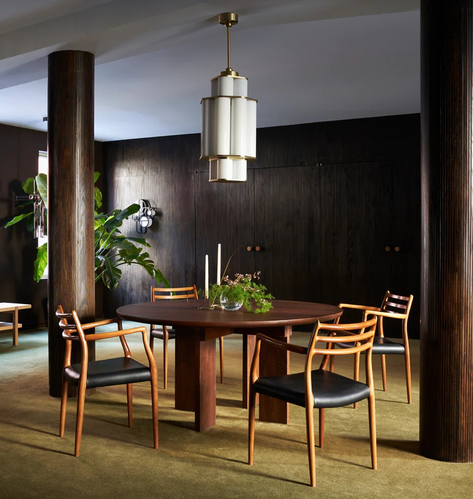 The Chapter table is one of a series of pieces originally designed by Post Company for Inness, a Hudson Valley country resort by tastemaker Taavo Somer that takes all of its cues from the surrounding landscape. Intentionally heavy visually and physically with joinery that is pronounced but not fussy or ornate, Chapter was designed to provide for gathering and connection.