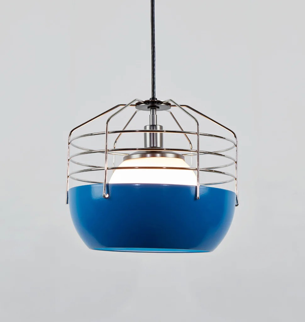 Bluff City merges a traditional pendant shade and a wire cage into an industrially inspired but refined pendant. A variety of finish combinations gives the light a vaguely postmodern feel that echoes the Memphis movement. However, the Tennessee town, known as Bluff City, was the inspiration for the series.