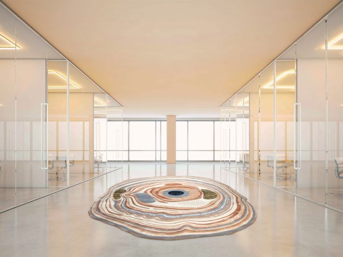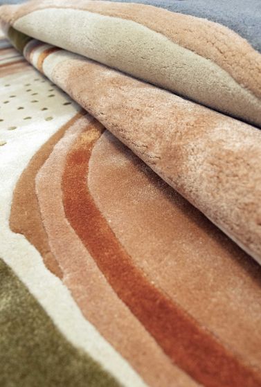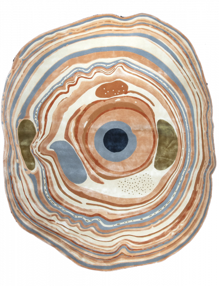 Agata Amber is one of the limited edition exclusive rugs part of Sahrai's Artists Selection designed in collaboration with David Elia and inspired by the mythical Brazilian Agate stone known for its uniqueness - no two Agate stones are the same. This design features irregular spirals of rusts, blues, ivories with touches of green stemming from an epi-center flowing to form rings covering the entire surface of the rug.
