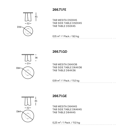 two heights with the three diameters for the tops).