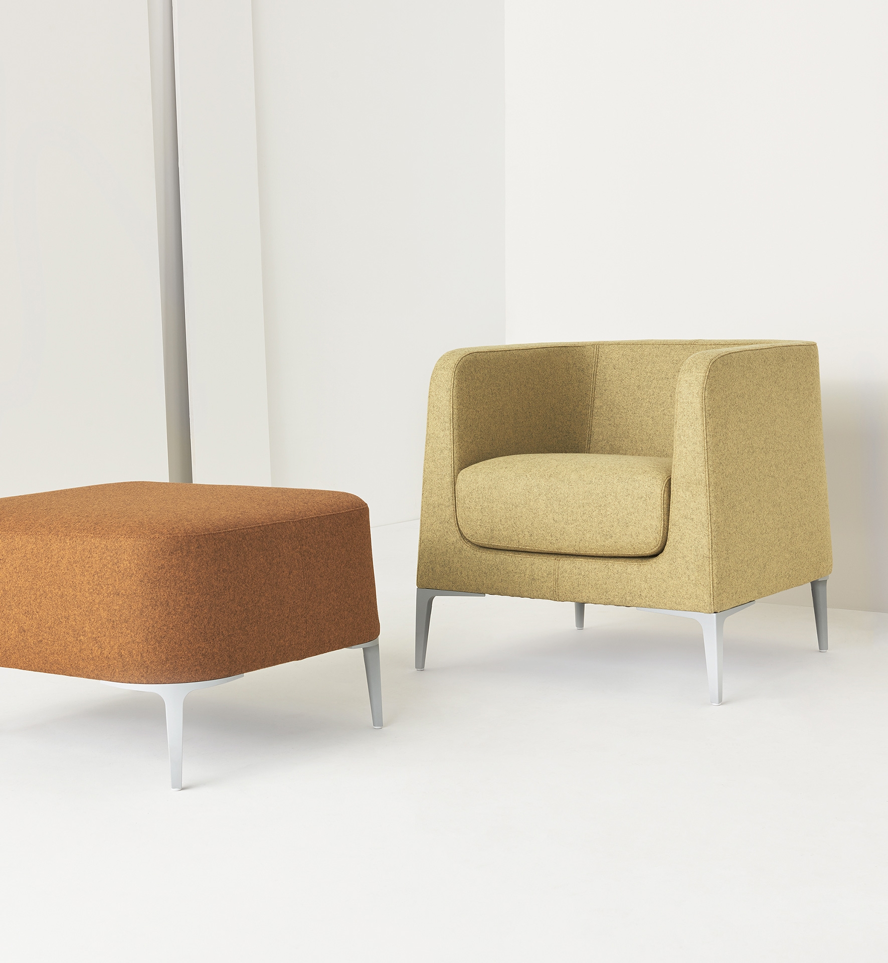Alphabet Collection is an armchair and a small armchair; it is a sofa and a chaise longue or an ottoman. It is one of the most extensive and complete upholstery collections available on today’s market. Each piece is inspired by a letter from the Greek alphabet and makes up an evergreen design. Each piece is made of solid materials, such as an internal steel frame and cold-injected polyurethane foam. Available in a variety of finishes, from the more elegant to the fresh and colourful proposals