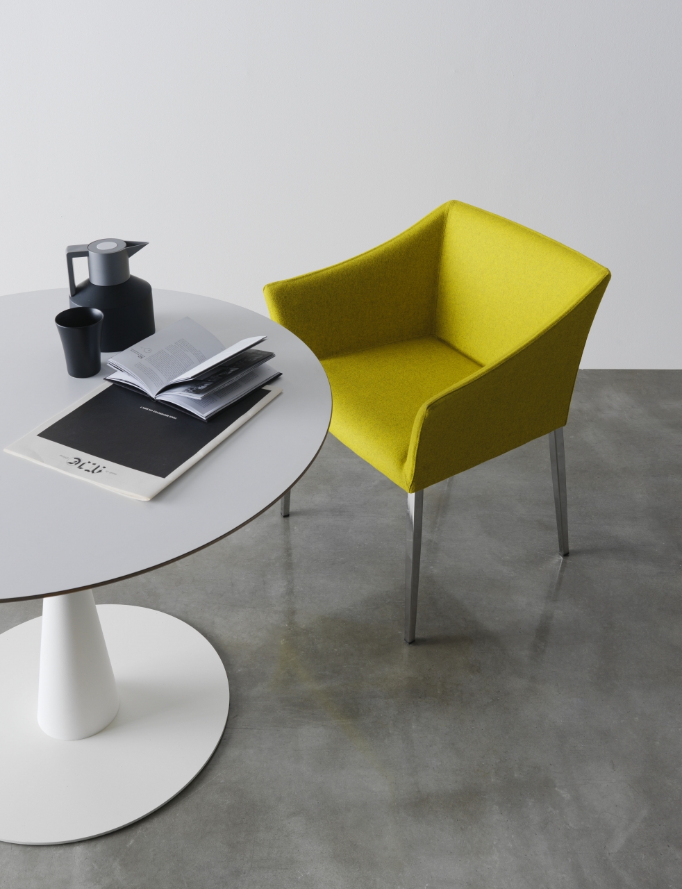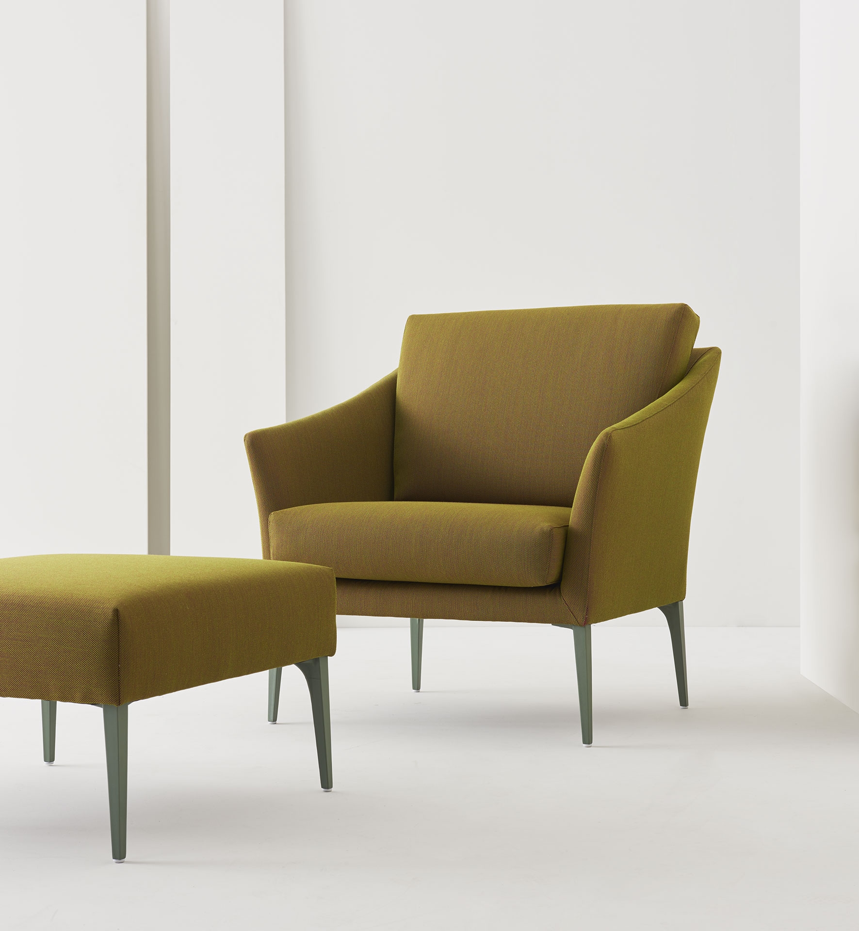 A family of a contemporary lounges characterized by a rigorous shell combined with cushions and sinuous lines. The collection includes lounge armchair, sofa and ottoman able to enhance any environment. Cross not only has charm but also functionality with an internal steel frame covered with non-deformable foam and polyester padding plus die-cast aluminium legs in powder coat or chrome. Covers in fabric, faux leather or leather.